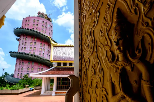 Змејот кој може да се види околу зградата е шуплив и направен е од железо и стаклено влакно. Во него има тунел и скалила што водат до врвот. Главата на змејот е на покривот со цел да го штити будистичкиот храм.
